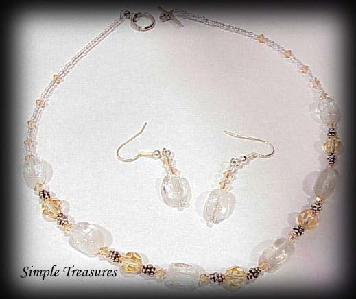 Elegant White Tear Drop Quartz Fading into a Light Yellow along with Barrel Pearls and Citrine Stones with Matching Earings. $30.00 Item #ST-800