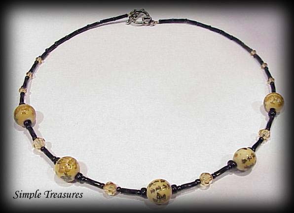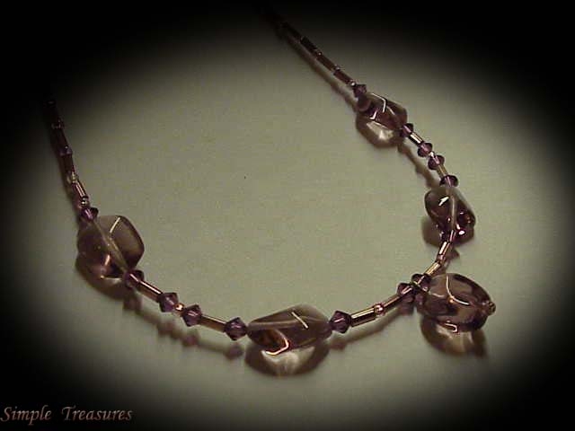 Tan-Brown Chineese Glass Beads with Light Colorado Topaz Swarovski Crystal along with the Matching Earings(not shown). $22.00