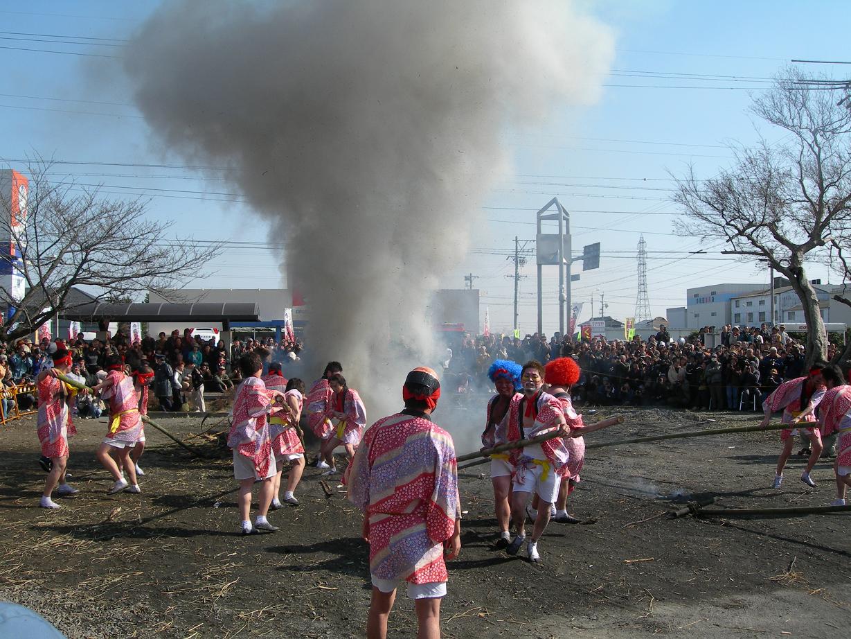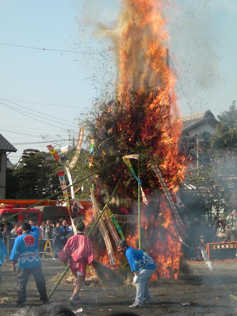 This was my third year in a row going to the Sagicho festival here in Hirata. Probably a testament to how long I've been on the JET Program now is how familiar something like the ritualistic burning of huge floats made of bamboo seems. This year was no different than the last two, with tons of spectators, participants drunk enough to endure the flames, and fires big enough and loud enough to keep everyone interested. I was happy again that a large group of Westerners made the long trip to Hirata and enjoyed the day with me.