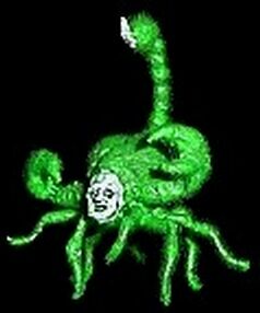 "Mushus" is probably a truncation of Mushussu (once misinterpreted by scholars as "Sirrush"), a monster from ancient Babylonian myth. While Mushussu is sometimes depicted with the tail of a scorpion (or a serpent), it's more of a dragon-like creature, so, like the Barometz, the game's version is significantly off-model. This Mushus sprite, recolored green, is also utilized for the "Pabilsag" enemy, a legendary entity that actually was half-scorpion, which is naturally a much more appropriate choice than Mushus was (I think scorpions look better in red than lime though, which is why I went with the former).