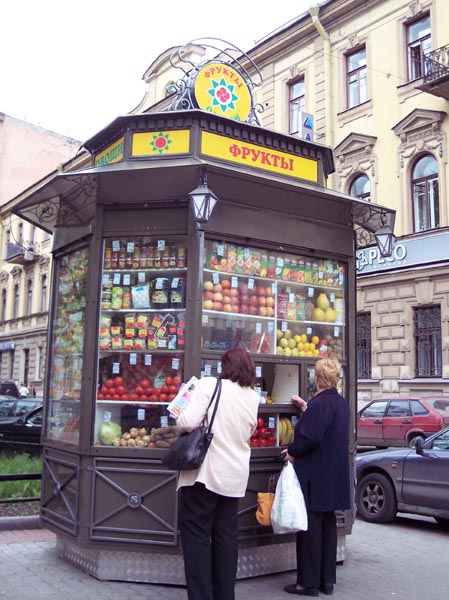 Women buy fruit from a kiosk. Photo by Stephanie Carrie. | |