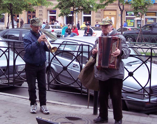 Street musicians perform daily outside the Chernyshevsky Metro. Photo by Stephanie Carrie. | |