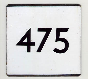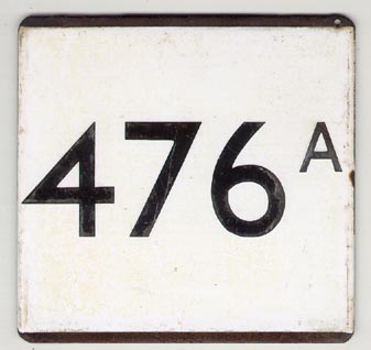 Route 475 provided a works service in the late ’50s on Mondays to Fridays from Crayford Ness via Slade Green, Perry Street and Barnehurst, then to Belvedere (Crabtree Manorway) or to Lower Belvedere. The route had disappeared by the mid-sixties. In the early ’70s, a number of routes in the Crawley area were taken over from Southdown, and their route 75 became the new route 475 under London Country running between Crawley (Bus Station) and Handcross via Pease Pottage. This “E” plate could have come from either route, but most likely from the more recent one. |