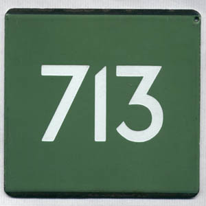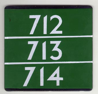 ![]() | ![]() This “E” plate with white lettering could have been for either of the 712 routes. | |