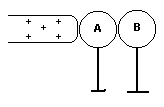 4.- Dos esferas conductoras , A y B, están premunidas de astas soportes verticales aislantes .Las dos esferas están descargadas y en contacto.Se aproxima (sin tocar) a la esfera A un cuerpo cargado positivamente.Es correcto afirmar que :