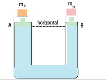 13.- Considere el aparejo de la figura, donde el líquido está confinado en la región delimitada por émbolos A y B,de áreas A = 80[cm2] y B = 20[cm2], respectivamente. El sistema está en equilibrio. Desprecie a los pesos de los émbolos y los rozamientos. Si ma = 4[Kg], ¿ Cuál es el valor de mb?