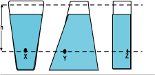 5.- Las figuras representan tres recipientes conteniendo el mismo líquido. Los puntos x,y y z se encuentran a una profundidad h. Con relación ala presión px, py y pz en los puntos x, y y z .Se puede concluir que: