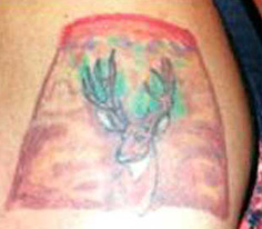 "I want it to be a deer head...with maybe like a crazy multicolored lampshade behind it, that sort of looks like a volcano..." - guy at tattoo shop