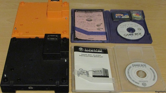The Game Boy Player is a one inch platform that attaches to the GameCube's Hi-Speed port (on the bottom of the system), allowing most Game Boy games to be played on a GameCube. It includes a Start-up disc that is needed whenever the Player is being used.