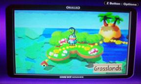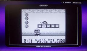 Like the Game Boy Color and Game Boy Advance, the Game Boy Player can play Original Game Boy games in black and white or in color. When the Game Boy logo appears, you can hold the B button and press left on the Control Pad to display the games in black and white. Or you can do nothing, which displays the games in a color pallet based on the game you're playing. You can also cycle through other pallets by pressing directions on the Control Pad, or by holding either the A or B buttons and then press a direction on the Control Pad (twelve possible pallets).