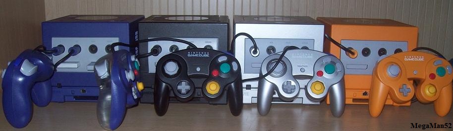 The standard Controller that is included with the GameCube, with other colors being available separately. Colors include indigo, jet black, platinum, spice orange, and indigo/clear in the U.S. and Canada, while other colors are also available in Japan and Europe such as pearl white. Up to four Controllers can be plugged into the system, and each one has a built-in rumble. A white standard Controller was released in Japan in 2008, which has a longer cord.