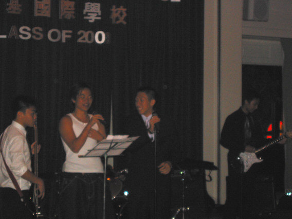 This page is dedicated to our very talented graduation band called the Electric Ducks! (cool name eh?) Anyway, we had one week to practice and get everything together for the graduation ball, and of course, we were the best! The band consists of the following people: Jaspar Siu and Joseph Ng on vocals, Matt (me!) and Alvin Yuen on guitars, Alan Kwan on bass and Julian Chow on drums. Great stuff! Oh, sorry about the quality of the photos. That hi-tech digital camera proved too difficult for *ahem* someone... Enjoy!