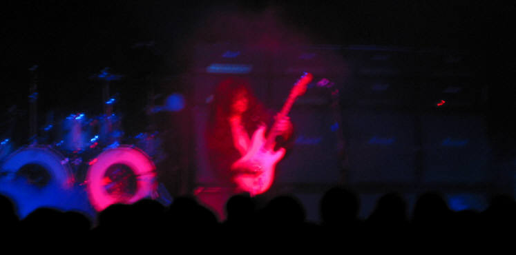 First up was Yngwie Malmsteen. He's Swedish and is into neo-classical shred guitar. This guy is fast! He's also very cocky and arrogant! Haha. His superior confidence is funny to watch as he swings his guitar, plays it behind his head, kick out picks, spin his guitar and throws it high up in the air, and more kicking. Oh, if you look carefully at the pic, you'll notice a wall of amps behind him. I counted 14 Marshall amps just for Yngwie! Wack! Yep, it was loud. But this is nothing compared to what he tours with in the 80's- 30 amps!!!