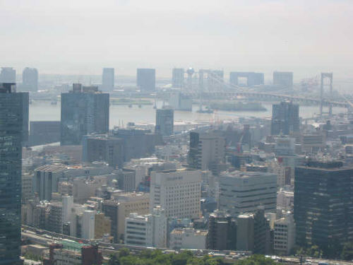 This is a view from the middle section of the Tokyo Tower!! That's Odaiba and the famous Rainbow Bridge!