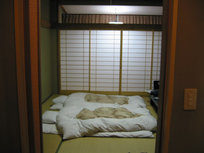 This is our traditional japanese bedroom! This is the New Fuji Hotel, room #501. It is situated beside mount Fuji, next to a lake where we were igniting some crazy firworks earlier on! The city is Hakone.