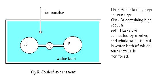 In the setup in the fig. The valve is opened after thermal equilibrium is attained, and the gas in the flask expands against the vacuum in flask B finally filling the both flasks. No, change in the temperature of the bath was detected during or after the process, hence there was no heat transfer in the process, also any work transfer.