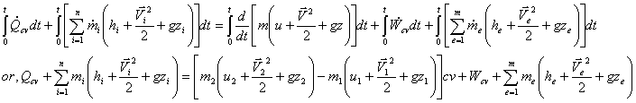 For, general control volume we may have several (n) entering or (m) leaving mass flow rates so, for that case, the final form or the first law becomes,