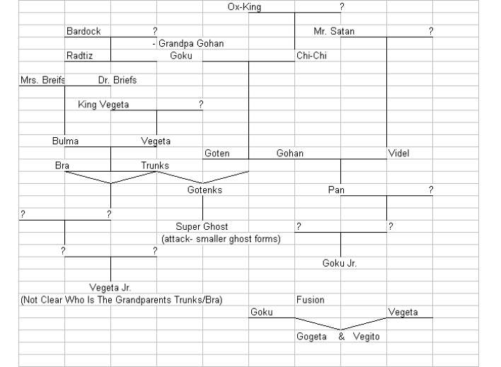 Heres will you will find the relationships of the Dragonball, Z, GT Characters. I think all the images are self explanatory so, no need for a key because all the Family Trees were written by Pysc_Out. More Will be added over time, enjoy!