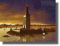 be seen more than 50 km (35 miles) off-shore. Shortly after the death of Alexander the Great, his commander Ptolemy Soter assumed power in Egypt. He had witnessed the founding of Alexandria, and established his capital there. Off of the city's coast lies a small island: Pharos. Its name, legend says, is a variation of Pharaoh's Island. The island was connected to the mainland by means of a dike - the Heptastadion - which gave the city a double harbor. And because of dangerous sailing conditions and flat coastline in the region, the construction of a lighthouse was necessary. The project was conceived and initiated by Ptolemy Soter around 290 BC, but was completed after his death, during the reign of his son Ptolemy Philadelphus. Sostratus, was the architect, but detailed calculations for the structure and its accessories were carried out at the Alexandria Library. The monument was dedicated to the Savior Gods: Ptolemy Soter (lit. savior) and his wife Berenice. For centuries, the Lighthouse of Alexandria (occasionally referred to as the Pharos Lighthouse) was used to mark the harbor, using fire at night and reflecting sun rays during the day. It was even shown on Roman coins, just as famous monuments are depicted on currency today. When the Arabs conquered Egypt, they admired Alexandria and its wealth. The Lighthouse continues to be mentioned in their writings and travelers accounts. But the new rulers moved their capital to Cairo since they had no ties to the Mediterranean. When the mirror was brought down mistakenly, they did not restore it back into place. In AD 956, an earthquake shook Alexandria, and caused little damage to the Lighthouse. It was later in 1303 and in 1323 that two stronger earthquakes left a significant impression on the structure. When the famous Arab traveler Ibn-Battuta visited Alexandria in 1349, he could not enter the ruinous monument or even climb to its doorway. The final chapter in the history of the Lighthouse came in AD 1480 when the Egyptian Mamelouk Sultan, Qaitbay, decided to fortify Alexandria's defense. He built a medieval fort on the same spot where the Lighthouse once stood, using the fallen stone and marble. Of the six vanished Wonders, the Lighthouse of Alexandria was the last to disappear. Therefore we have adequately accurate knowledge of its location and appearance. Ancient accounts give us a brief description of the "tower" and the magnificent white marble cover. They tell us how the mysterious mirror could reflect the light tens of kilometers away. Legend says the mirror was also used to detect and burn enemy ships before they could reach the shore. In 1166, an Arab traveler, Abou-Haggag Al-Andaloussi visited the Lighthouse. He documented a wealth of information and gave an accurate description of the structure which helped modern archeologists reconstruct the monument. It was composed of three stages: The lowest square, 55.9 m (183.4 ft) high with a cylindrical core; the middle octagonal with a side length of 18.30 m (60.0 ft) and a height of 27.45 m (90.1 ft); and the third circular 7.30 m (24.0 ft) high. The total height of the building including the foundation base was about 117 m (384 ft), equivalent to a 40-story modern building. The internal core was used as a shaft to lift the fuel needed for the fire. At the top stage, the mirror reflected sunlight during the day while fire was used during the night. In ancient times, a statue of Poseidon adorned the summit of the building. Although the Lighthouse of Alexandria did not survive to the present day, it left its influence in various respects. From an architectural standpoint, the monument has been used as a model for many prototypes along the Mediterranean, as far away as Spain. And from a linguistic standpoint, it gave its name -- Pharos -- to all the lighthouses in the world. Just look up the dictionary for the French, Italian, or Spanish word for lighthouse. |