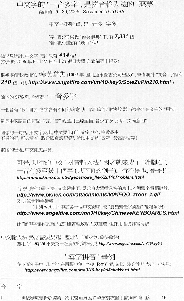 PinYin & ZuYin Problem Chinese has only 210 sole pronunciations out of 7331 characters
