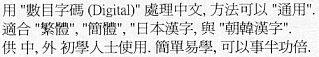 用 "數目字碼 (Digital)" 處理中文, 可以事半功倍.