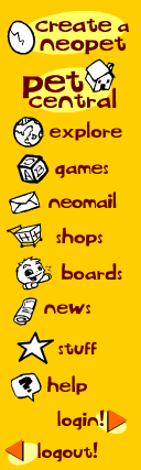 NEOPETS, characters, logos, names and all related indicia are trademarks of Neopets, Inc., © 1999-2005. ® denotes Reg. US Pat. & TM Office. All rights reserved. PRIVACY POLICY | Safety Tips | Contact Us | About Us | Press Kit Use of this site signifies your acceptance of the Terms and Conditions |