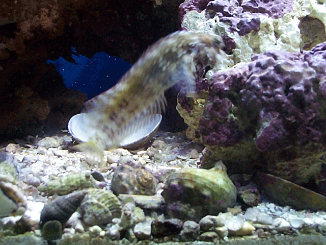 We also have a Lawnmower Blenny Salarias Fasciatus that is very elusive. We haven't had any luck getting a clear shot of him yet, but we will.