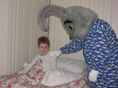Mayor Clayton tucking Sean in for the night