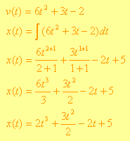 Solución: En este caso se requiere utilizar la integral para entrar la posición a partir de la razón de cambio. Revisando las reglas de integración podemos utilizar la 1) y 2) para constantes y potencias: