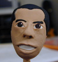 I've been working on making the cake toppers for Janis' wedding cake. I'm worried that the faces don't look right. Actually I'm terrible with faces, often not recognizing people that I haven't seen in awhile. Oh well, here is the beginning of Mikee's head. It's still a work in progress, especially the hair.