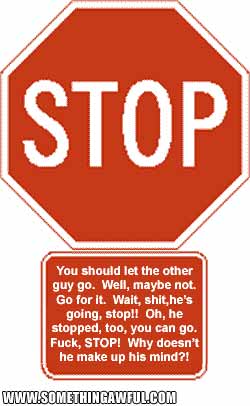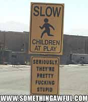 Funny signs! I did not come up with these myself, I saw them at somethingawful.com. I think these're hilarious though, and wish that I came up with it. There's more at this link. If you're bored enough to go to the site, check out their legal page too... good stuff.