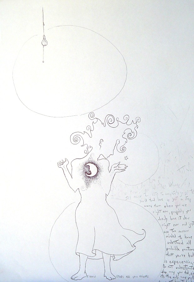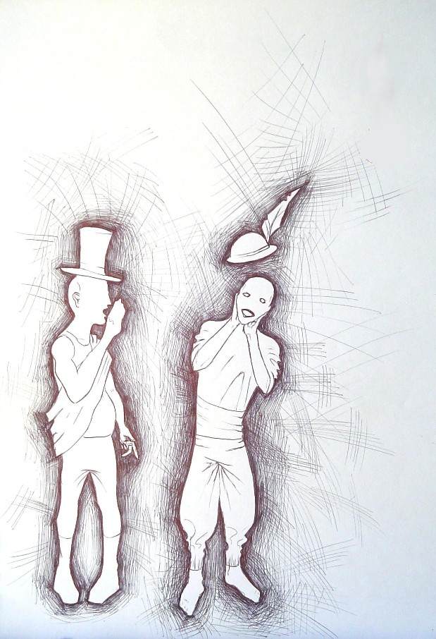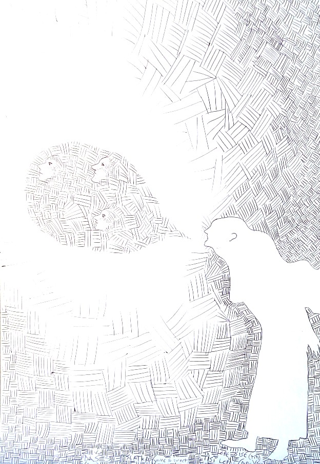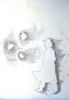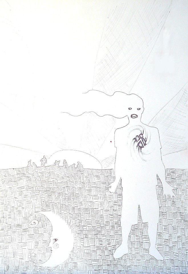 bocetos, en lápiz, tinta, birome bic, grafito, carbonilla.