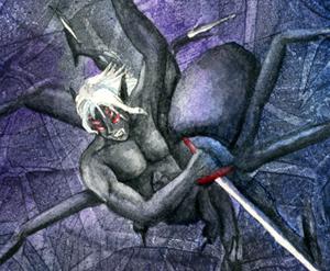 Selvetarm is a chaotic evil demigod worshiped by few drow in UnderGaia and is the patron of unequaled battle prowess and bloodlust. Selvetarm cares only for battle and destruction everywhere, and he has a great hatred for all things living, although that is nothing compared to the hate he has stored for his mistress Lolth.