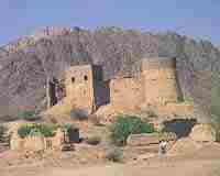 The mountain road finally begins its long, gentle descent to the plain of Fujairah and the sea. The city itself is dominated by Fujairah fort, a massive structure which is starting to receive some restoration. It is worth climbing to the top of the fort