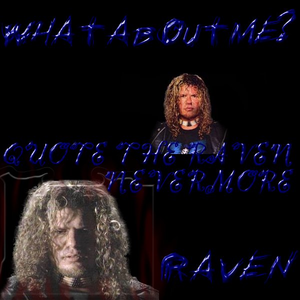 discription of Raven:Raven is so far the best wreslter in BFWF 9 and 1 holy crap thats alot and raven has been in BFWF the longest.Very good wrestler