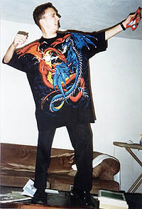 Meet Everett!One of my talents is playing the electric guitar. I bought my guitar from my brother-in-law, who makes electric guitars with his father for rock groups. In the other pictures you see me with a little toy guitar, that I got from Ben for my 20th birthday. Even though I may look like a heavy metal rocker, I never played in a rock band. I just like to dress like one once in a while, to show the wild, crazy side of me. I did play guitar in the Jazz Band my senior year in high school, however. ![]() |