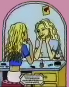 After much discussion and many rejected ideas, they come up with a real gem: a picture of what looks like your typical beautiful, brainless, popular person. However, near the bottom, Daria’s contribution, a piece of paper with a caption, is taped. The caption reads: “She knows she’s a winner, She couldn’t be thinner, Now she goes in the bathroom, And vomits up dinner.”