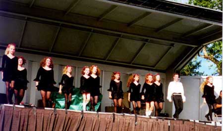This is Rayna and her best bud Moira at their school after dancing with the school orchestra, who played the "Lord of the Dance" theme. Go visit Rayna's Humble Irish Dancing Homepage!