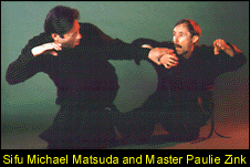 Paulie Zink with Hung Gar Master Lam Jo in Hong Kong. Lam Jo was best friends with Ken Tak Hoi and also studied Monkey from Master Hoi. Lam Jo encouraged his student, Y.C. Wong to also study Tai Shing Pekwar from Master Hoi. Y.C. Wong today not only teaches Hung Gar, but also teaches Pekwar he learned from Master Hoi. |
