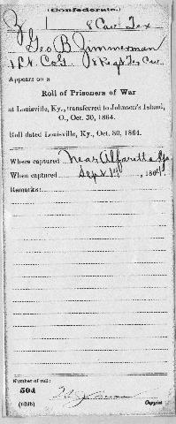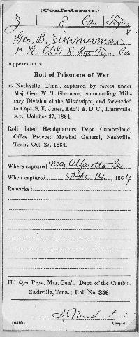 This page contains the documents received from the National Archives, relative to George B. Zimpelman's service in the Civil War. Additional links are at the bottom of the page. To see a transcription of a card, click on the highlighted card number.