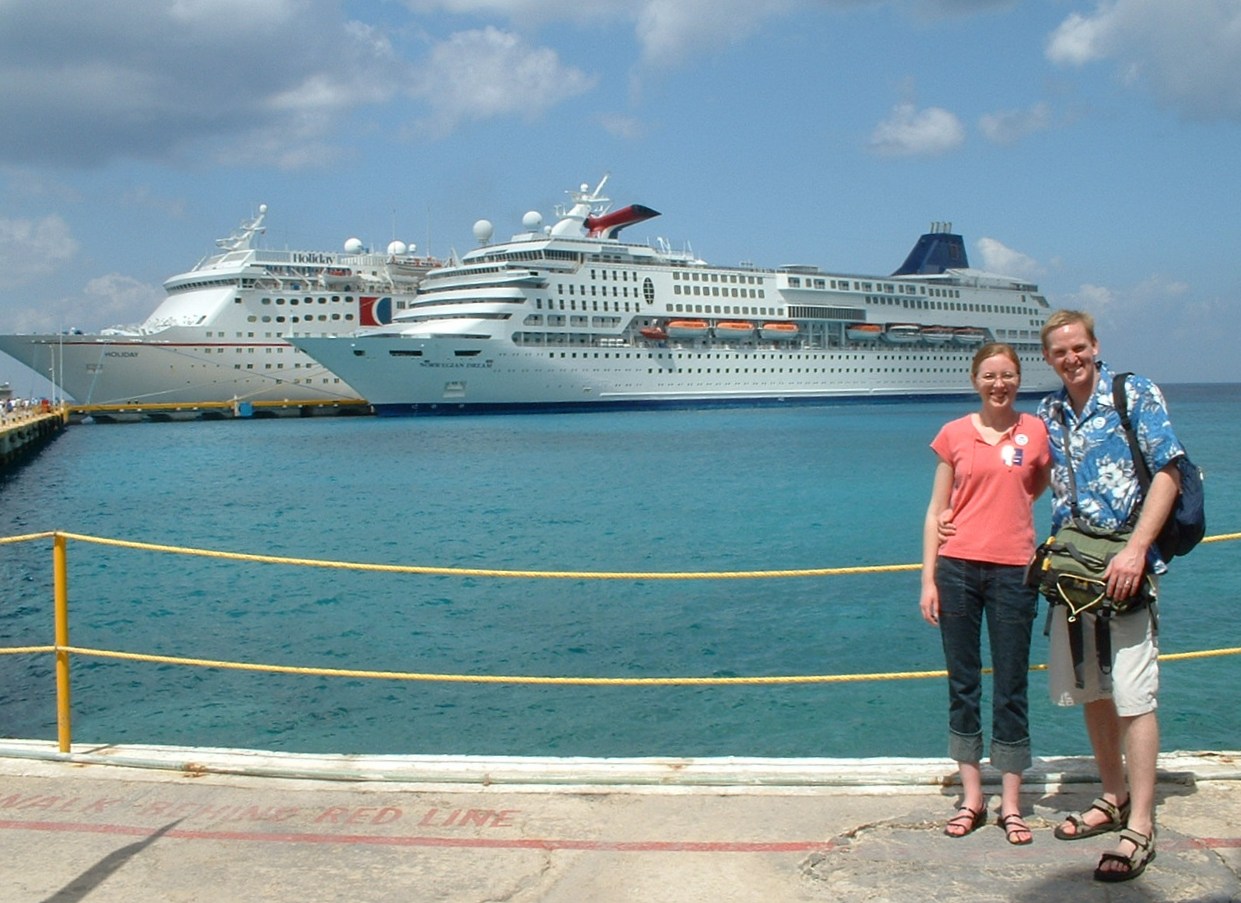In front of the cruise ship