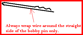 2. Push the straight side of the bobby pin into the loop, as shown. Pull the ends of the wire to the right and left to secure the wire to the bobby pin.