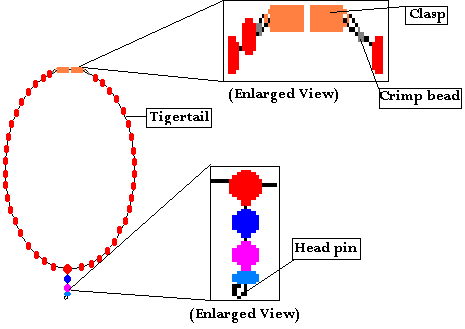 5. Use the same technique starting the necklace to end the necklace, this time using the other half of the clasp and the second bead crimp.