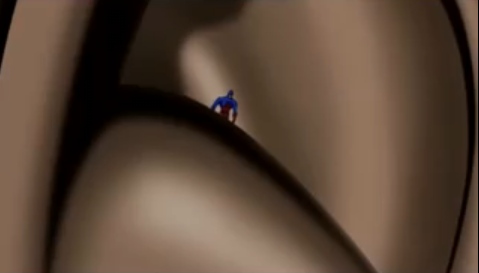 Ah, but it wasn't a normal human doing the listening, was it? It was Superman, and super hearing is one of his long-established super powers. So, as completely absurd as it may sound, I can almost accept that teeny Atom could speak to Superman. The problem that now arises is, how did Atom even recognize that Supes (and later, when Supes picks him up, Batman) was speaking, much less understand what they were saying? Just as his vocal chord transmitter was proportionately smaller, so was his ear receiver. The human ear can hear well below the frequency at which speech is no longer intelligible, but the Atom was absolutely dwarfed by Superman's tragus, and Superman and Batman, voiced as they are by George Newburn and Kevin Conroy, respectively, both have deep, rich baritones. Atom just could not hear them with his tiny little ears. Not to mention the fact that sitting in a man's ear when you are the size of a chigger and he is talking is likely to be an extremely loud and dangerous feat, considering the way the jaw moves and vibrates when vocalizing.
