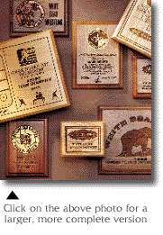 Brass plates mounted on your choice of Oak, Mahogany, Cherry or Walnut finish bases. Brass plates come in nearly any color you will desire.