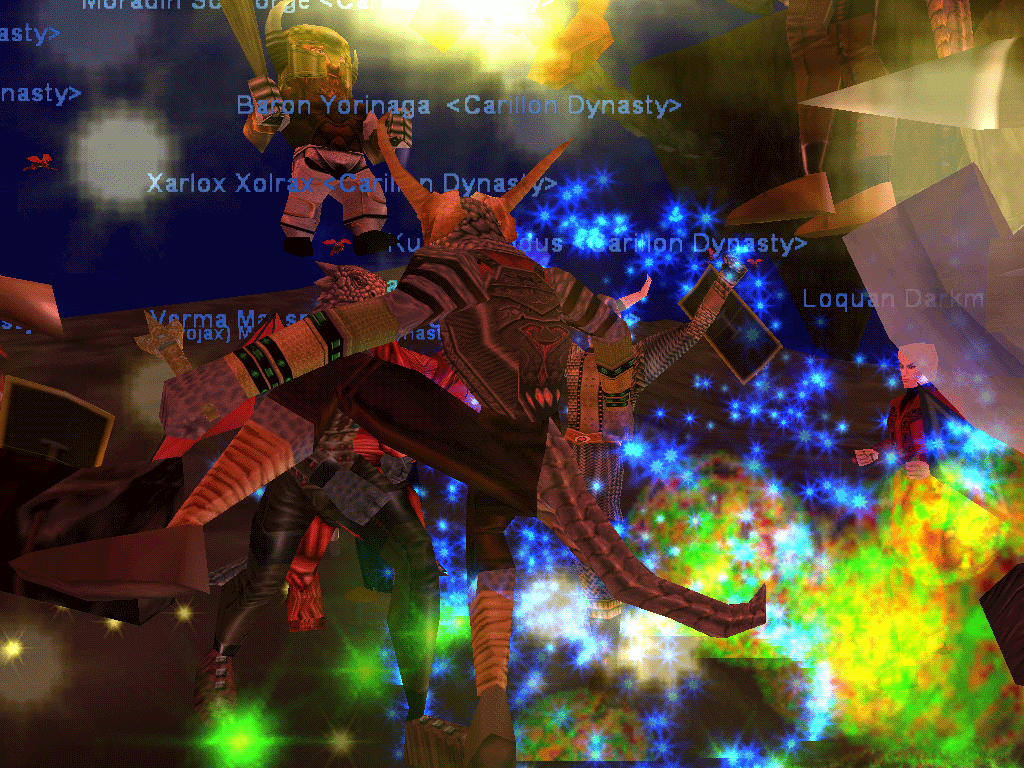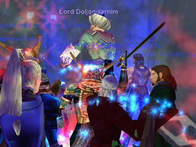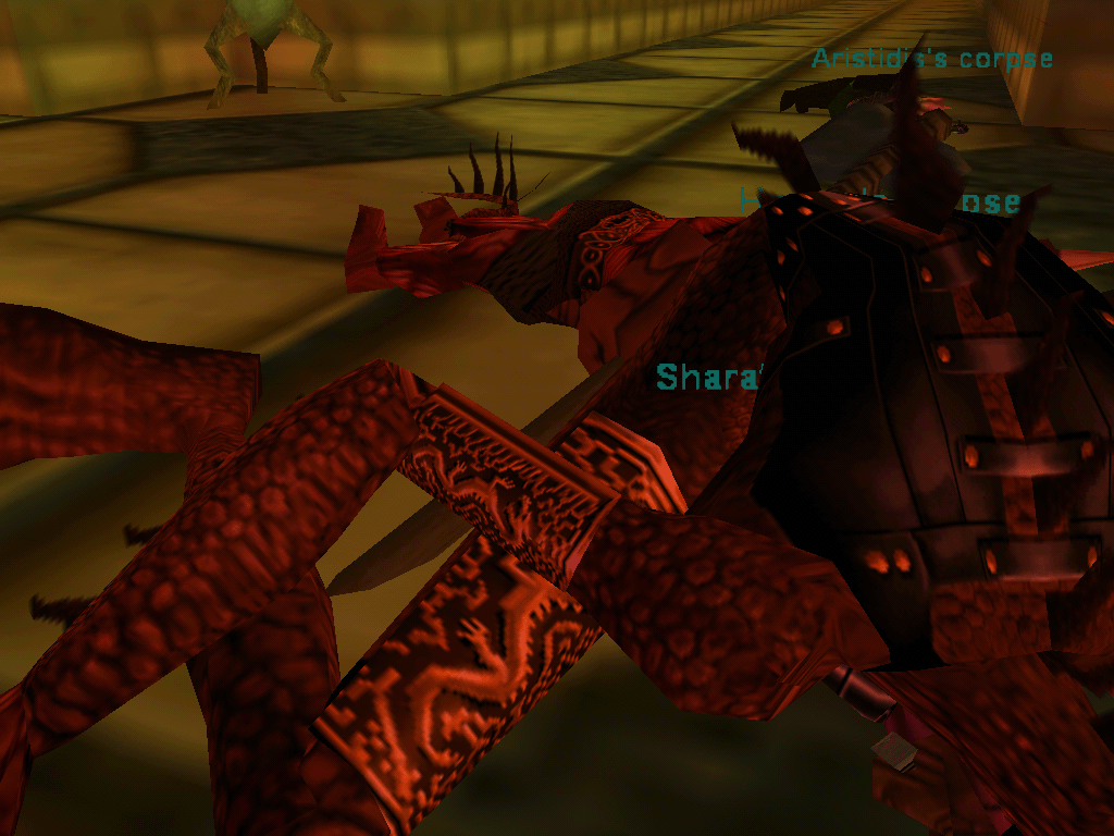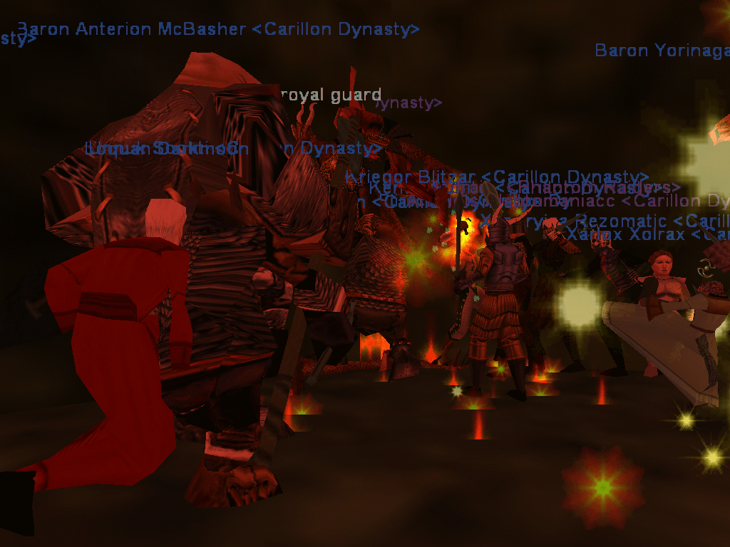 The chardok king and prince were attempted by Carillon Dynasty. It was our first time inside the actual chardok royals area. We cleared through next to prince door with ease. To our suprise though when the rogue opened the door all 16 mobs and the prince came out at us at once. Three of the four clerics /q'ed and one stayed getting off one CH on the MA. The prince actually fell before they were wiped out. Two clerics escaped and rezzed us in before repops and gaining the enchanter epic piece. We continued on and one room away from the chardok king a entire room of 25 sarnaks popped on us when the one we were fighting got attacked into a wall =(. We'll suceed next time.