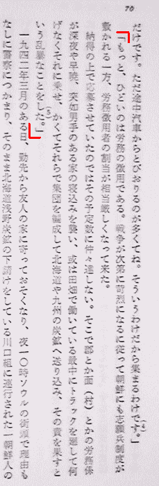 | 鎌田澤(沢)一郎著「朝鮮新話」320ページ | 朴慶植著「朝鮮人強制連行の記録」1965年未来社発行70ページ | |