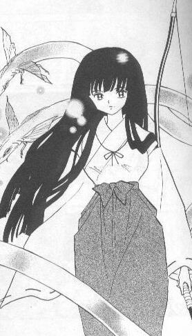 Hmm, this will be difficult. Kikyo is from the anime InuYasha. Here is the Reader's Digest version of her life: Priestess guarding special jewel. Falls in love with InuYasha(1/2 demon). Killed by treachery(thinks InuYasha killed her). Resurected 50 years later. Goes around trying to kill InuYasha. To add to the excitement her reincarnation, Kagome, is also running around with InuYasha. Also, InuYasha still loves her and loves Kagome. How's that for a strange love triangle?