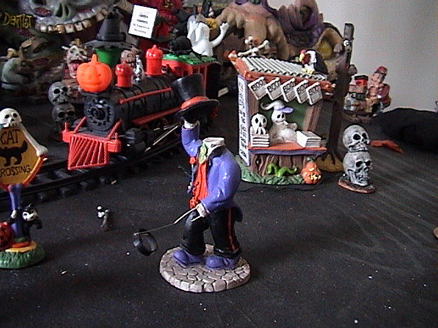 the years, Beanie has built a HUGE collection of Halloween village items.