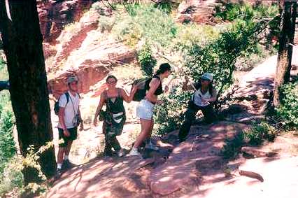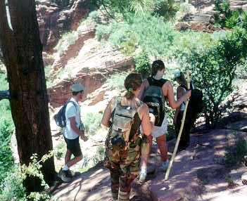 So we reached a short resting spot before we continued in the climb downward...and to be honest, in this picture we are trying to decide just where we are supposed to be going from this point...but you know how women are!